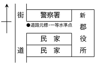 ちなみに、道路際にある白いホームベース状の物体は一等水準点第2157号の蓋石である。撮影した2004年に水準点は900メートルほど東へ移設され、2005年の自転車旅行で立ち寄った時にはこの蓋石も姿を消していた。