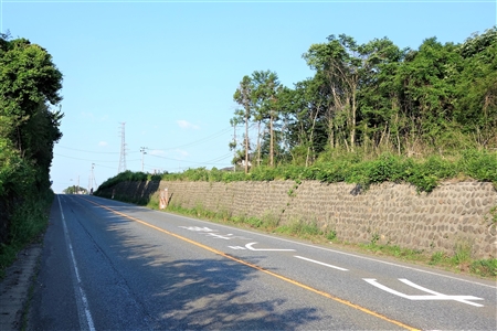 現車線と元車線の間には、かつて北八里の標石が設置されていた玉石積擁壁の上部が、まるで馬の背のように細長く残っている。
