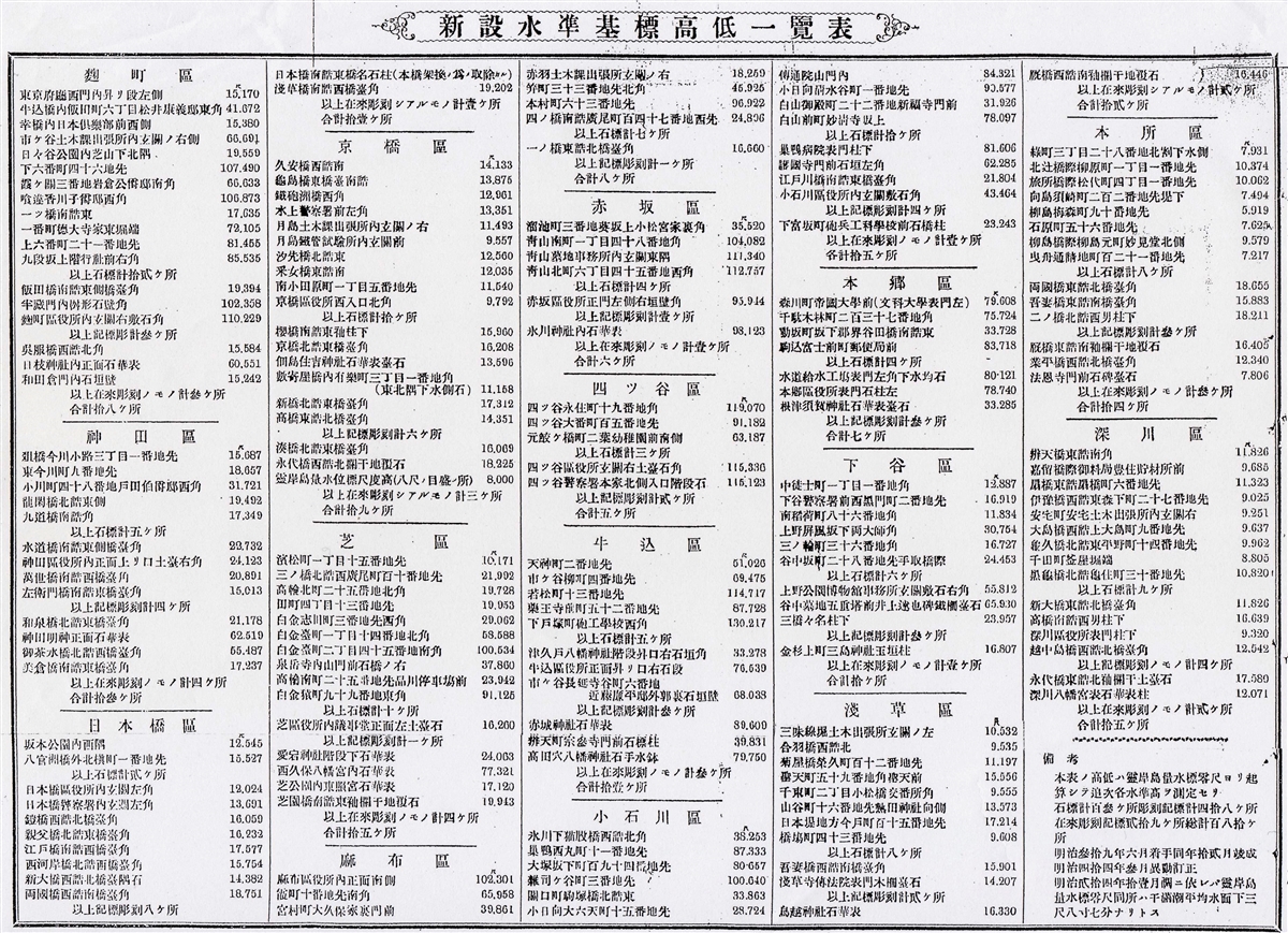 備 考 本表ノ高低ハ霊岸島量水標零尺ヨリ起算シテ追次各水準高ヲ測定セリ