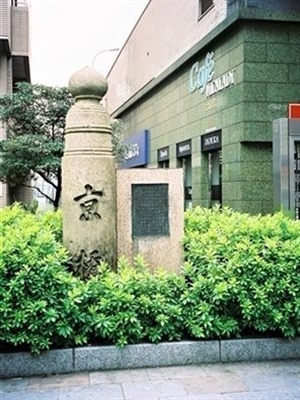 京橋跡 「京橋」銘の親柱 日比谷公園に残る欄干石柱